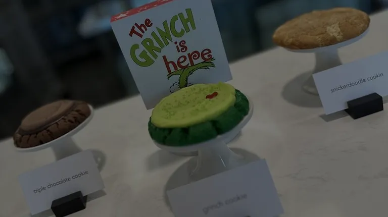 As a fellow sugar addict these cookies were pretty good! There were 5 different flavors to choose from, all sitting atop pretty white stands. We decided on the grinch green sugar cookie, which had a cute little red heart, and the snickerdoodle cookie. Both were decent but we preferred the snickerdoodle as the sugar cookie was cold and a bit hard. Overall were decent cookies!The offerings and pricing are fairly close to its competitors, but I think we'd only come here every once in a while since it's nearby and not necessarily my top favorite cookie shop. Sadly it's also CLOSED on SUNDAYS so don't accidentally come like we do.