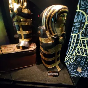 So I saw other reviews and want to make it really clear that this is NOT a touring exhibit of King Tut's tomb. It's a stationary exhibit which should make it obvious that these are not the real artifacts. That and the fact that it's this inexpensive, there's not a ton of security around, and it's not super crowded. So set your expectations to reality and you won't be disappointed. The point is to give the feel of the tomb and the artifacts. That it does perfectly well. These give you an idea of the size and look of the artifacts, and they look really nice. We had a perfectly pleasant interaction with the employee so no complaints there either. We thought the movie first was interesting and then it opens up to the exhibit. Lots of information and photo ops all around. I loved the layered look of the sarcophagus and you get the vibe for what it would have felt like to discover this stuff. Personally I thought the video display covering his physical ailments was super interesting. I already knew he had issues but there's been updates in our knowledge base for science and medicine that provided me with new details I hadn't heard before (or don't recall anyway). We thought this was a cool experience and glad we checked it out.