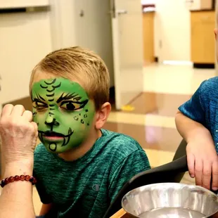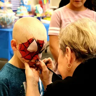 Mrs Claus doing wonderful face painting for our Christmas themed party