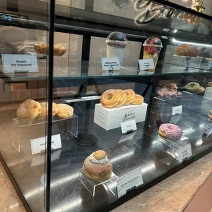 As a traveling Connoisseur of doughnuts I take trying them in other cities very seriously. I hold pastries in general to a high standard. This place apparently doubles as a speakeasy which is clever and cool. Starting off with the classic Homer Donut 4/5 basically a DD in disguise. Nothing special. Cheese Danish 1/5 stale and hard Almond Croissant was a show stopper and had true dimension, texture and flavor and appeared to be hand crafted.Decent variety to choose from, line moved fast. I'll skip it next trip but glad I could try it out.