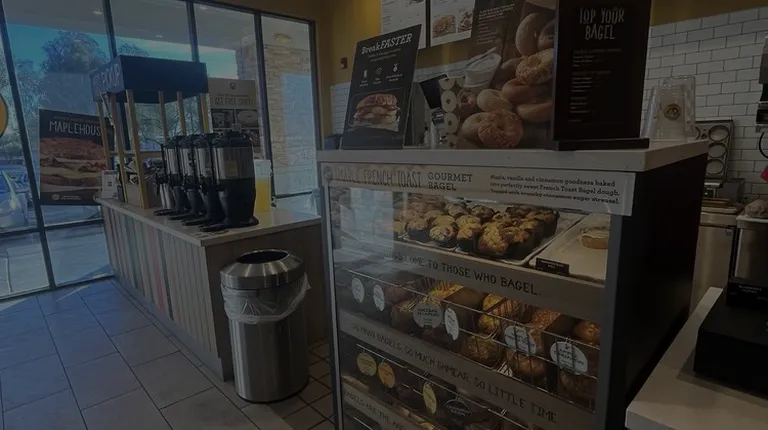 Looking on Uber Eats this morning for a place to get a bagel, and thought it was an error that Einstein's was listed on Ann. To my surprise they now have a location in the neighborhood. Have begged for a bagel spot for years so this in itself is a win.Somewhat tucked into the little set of stores in the Smith's shopping center the space is built as a grab and go. By no means a negative, but am used to the sit-down spots.Staff was attentive and friendly. Selection is what you find and most Einstein's, perhaps a bit smaller. In all fairness my perception may have been skewed with the smaller building. The two bagels were good, and in line with my past experiences over the years at Einstein's.Will be back.