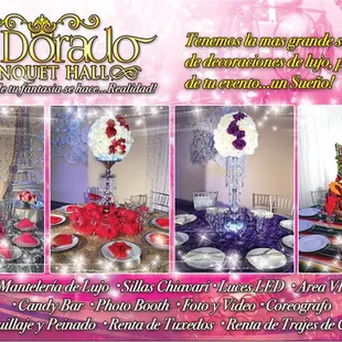 The venue absolutely magical textured walls lights all over, beautiful center pieces. We chose El Dorado banquet hall, May 2023 for my daughters late Quince/ graduation party. Maria was wonderful in the planning, she organized food tasting dessert tasting and table decor extremely well we were very pleased. The DJ was awesome. The staff was very catering. Bathrooms were clean ceilings were nice floors were spotless. Everything was immaculate. We will be book this place again for our next daughters event. Thank you Maria & staff for making this day extremely smooth and memorable.