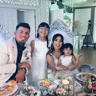 I have been waiting for the right time to write out this review for El Palacio Del Sol, Edwin and staff, and our event. My sisters took my daughter to check el Palacio del Sol out for her quinceanera. She loved the inside of the venue and told us she wanted her event there. I was able to make an appointment for a week after and was walked through the venue with Edwin. He briefly showed us the venue, bathrooms and their decorated tables for us to have an idea.We went into Edwin's office and he was explaining the packages we could choose from, what they came, and the costs. He answered all of my extra questions like if we add something, the cost of it, or if we'd be able to substitute something else for the package cost. (I.E.- if we wanted red meat and no chicken, or extra salad, tortillas for food, etc.) We got a package that included dinner, a Photo Booth, mariachi, food, a DJ, cake, a party bus, and of course the decorations of the tables, and full staff to assist the night of. Our original contract, with us substituting one of our entrees with meat and no chicken, was about $8,000. That came with a full set up, staff handling the serving of the food, drinks, and clean up. We contracted our photographer who usually works with the venue and Edwin, and they were very good at talking to each other the day of about the timing they'd show up to take pictures before the guests arrived. We were able to use their projector for their slideshow at no extra cost. Using Palacio del Sol for my daughter's event was the best choice we made. We were able to schedule and reschedule with them, we were able to call and communicate with Edwin when we needed to. The food was amazing, and the staff was friendly and helpful. We had a tiny issue of the DJ, he messed up the songs; but the guests didn't know the songs, so they didn't notice! Give palacio a try, they're worth all the money you pay, and the service you'll get from Edwin and his staff is worth it!