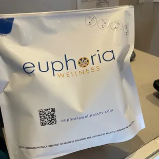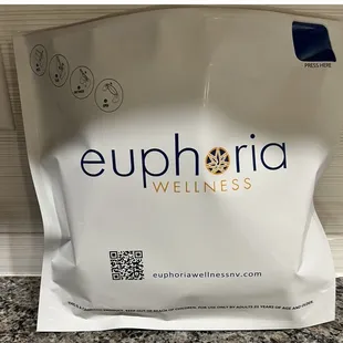 Complementary cold Euphoria, water bottle.