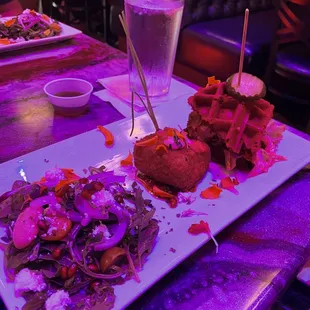 We did a self-guided tour for Downtown Las Vegas back in August 2021. Finger Licking Foodie Tours are self-guided and come a lower price point than the Lip Smacking Foodie Tour counterparts. While a guided tour is alluring, we still had a great time at our own pace with this self guided tour. Price/Value: The price for the self-guided Downtown Las Vegas tour is usually $79 a person. However, I had a MyVegas reward for BOGO, which turned out to be a great deal. Unfortunately, I don't see this reward on the app anymore but if this ever turns up again in the future, I'd jump on it.Even at full price, I do believe the value is there. I was stuffed after the tour, so you do get plenty of food. I wouldn't necessarily pay full price for it, but I enjoyed the offerings at each of the three stops. The Process: Upon booking your tour (there are plenty of time slots for every day), you will receive an email confirmation that contains the details of your itinerary. This includes addresses of each restaurant as well a schedule of times to adhere to (you get about 30 minutes at each spot). It was also nice to see that the tour will accommodate you if you have any food allergies. Tips/gratuity is already included in your tour price. Upon arriving to each restaurant, we simply let them know we were there for the tour. Almost immediately, food is prepped and promptly brought out for us. Service was great at each stop. We didn't feel rushed at all and felt as though 30 minutes at each stop was adequate. The food offerings are bite sized and simply samples of the menu, but all three stops in combination made me full and happy. If you want to be surprised about the food offerings. stop scrolling ahead for incoming spoilers! ******SPOILERS AHEAD****** Stop 1: Carson KitchenMy favorite was probably the deviled eggs with caviar. Other offerings were veal meatball, corn salad, chicken skins. Great selections. This place was also next to Donut Bar, so we had to make a pit stop here. Stop 2: Therapy Standout to me was the mini red velvet chicken waffle sandwich. We also had fried mac and cheese with a side salad. This stop had the smallest portions out of all the places. Stop 3: 7th & Carson I recall the fish and chips portion here being pretty generous! I also liked the mushroom gnocchi. We were also treated to a dessert to finish.