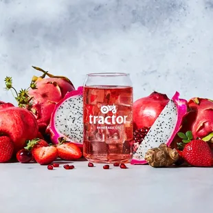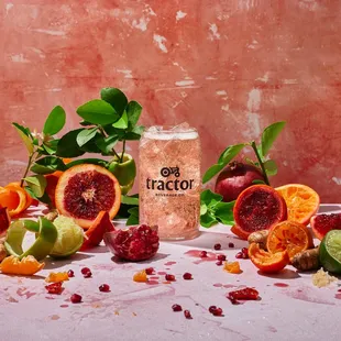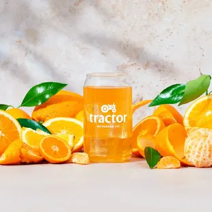 a can of tractor surrounded by limes, carrots, and gingers