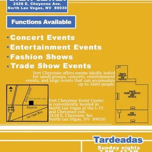 Everything from this place isn't the best. The location isn't a very safe place during the nights. The parking lot is very gravelly, they occasionally have valet and by valet i mean a big square in the parking lot divided with 4 cones with yellow caution tape -__- . The customer service isn't great. The only chance for you to enjoy attending The Fort Cheyenne is if an event in your interest is taking place there. Which there events usually consist of "bailes" spanish word for dances.