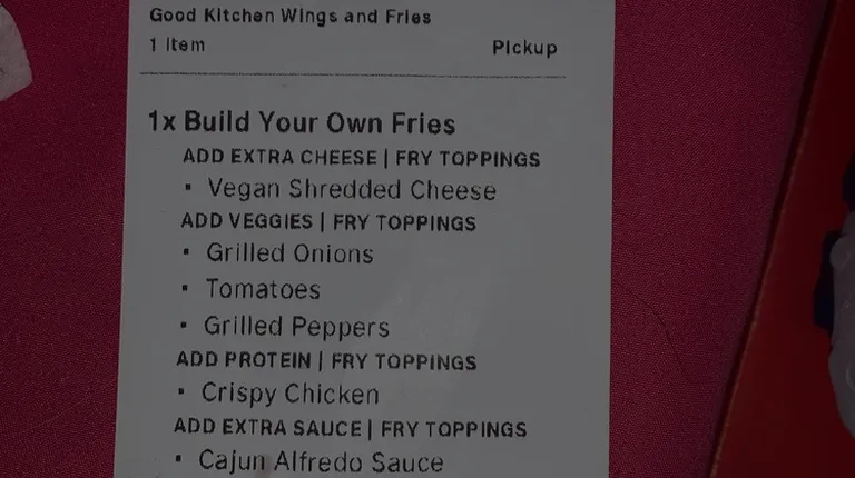 Any establishment that has Kool-aid on the menu is A-OK with me. I ordered the wings with garlic Parmesan and honey bbq sauce, tenders, and cheese fries. Everything was GOODT (with a T). I'm glad I took a chance and ordered from a new place. Good stuff.