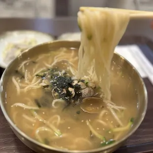 Great option for Korean food without having to go to Spring Mtn.!Over two trips, I ordered the sullungtang and kimchi jjigae for my parents, and a combo B with seafood stew and galbi and a beef kalguksu for us. They were all great. My parents liked the sullungtang, although my mom said they put regular noodles in it, instead of glass noodles. We brought home the broth from the beef kalguksu (5/5) and I used it to make dduk mandoo soup with it. Yum!Also brought home the leftover seafood soondooboo 4/5) and the galbi (4/5), which made for a perfect lunch the day after. A great addition to the northwest. In the Trader Joe's parking lot so parking is a non-issue.