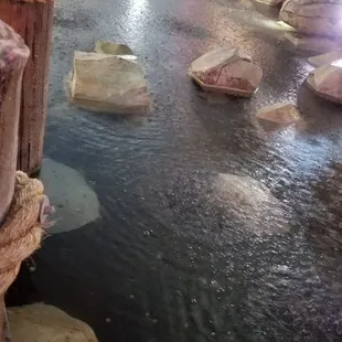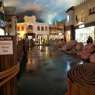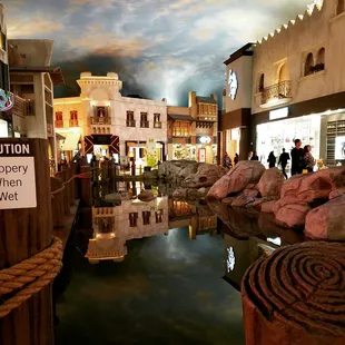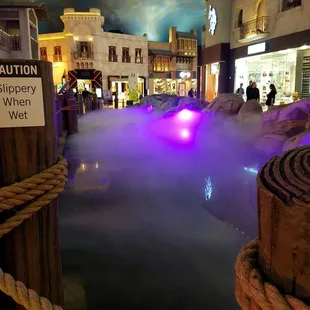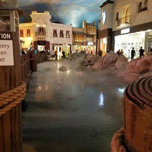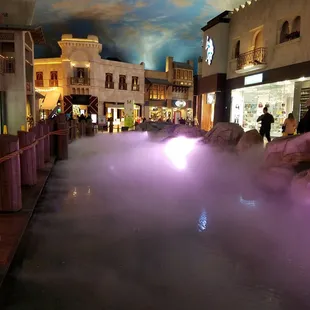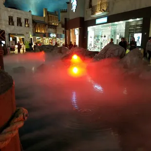 It's a fun, remnant of the previous tenant of the building, the Aladdin.A quiet shop is light up and loud'd up by the coming storm... and suddenly it's raining inside the shops... into a pool in the middle. It's a fun little show to take your kids to, to enjoy between shopping.