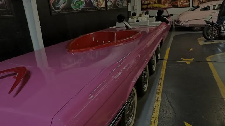 Hollwood Cars Museum is located on Tropicana and Dean Martin, next to Liberace Garage.The museum has over a hundred cars, including vehicles that were featured from films and television. One of the collection's highlight is the 1976 Mercedes Benz pink limo, which has a built-in heart-shape hot tub. At 38 feet, it was the largest car in the world and recognized by Guinness Book of World Records. Currently the world's longest car "The American Dream" broke record at over 100 ft, and that's on display at a museum in Orlando, Florida.They even have the actual lifeboat from Tom Hank's film "Captain Phillips" that seats about 30 people. There's also the Lotus Esprit submarine car, which is uniquely design for the 1977 James Bond film "The Spy Who Loved Me" and the Batmobile from the movie "Batman Returns." My favorite are the stunt cars from the first movie "The Fast and the Furious" with Vin Diesel's 1993 Mazda RX-7 and Paul Walker's 1995 Mitsubishi Eclipse, these cars are very cool and memorable!