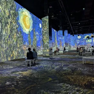 It was amazingly beautiful. We went into a big room with benches. Then lights go out and Van Gough's art starts in animation. It's so pretty. The music is awesome!