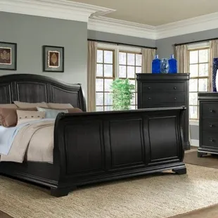 Metal & Wood Sleigh bed room set. Queen or King size available.