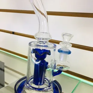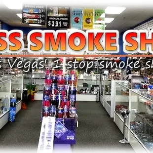 While out driving with a friend last night the urge came over for nicotine. He happened to notice this shop as we were looking for a parking space. Being that the cost of cigarettes are continuing to sky rocket, if you must smoke why not get a deal. In search of those details we ventured in.The store is very clean and smells so nice. The staff was very friendly and greeted us with the usually pleasantries before even closing the door behind us. So much glass everywhere for all those substances that one needs. They come in all shapes and sizes. The prices for these designer smoking machines varies but we did not come in for that. My male friend already has these glass objects.He did find the papers and cigs that he needed for about $2.00 less than the gas stations. I was drawn to the cigar section and believe me it was pretty impressive. Usually the smoke shops here in Vegas do not carry cigars they seem to resemble the old head shops like those of Arizona or Cali. I did get a cigar and we shared it all the way back to my house in the car.