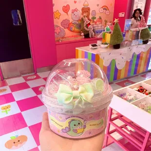 Cute place! I really love slime and squishy stress balls. I got strawberry milk slime which smelled amazing and a cacti "stress ball". I ended up forgetting to put the cap on my slime and it dried out, but it was nice while it lasted. I still grab my cacti on my desk whenever I feel anxious or just need something in my hands. It was nice going in and exploring! Got to smell and look at a variety of slimes.