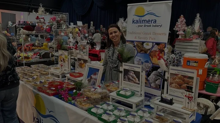 We discovered Kalimera Greek Bakery this past Monday at the Sun City Farmers Market! It was a pleasure meeting the sweet owner/baker Joanna and sample some of the treats. We lost our self control and bought the triangle Baklavas and also the brownie-like nut-filled bars (Greek Kormos?). Both pastries were just THE BEST and not overwhelmingly sweet. We know we won't be able to resist buying these again and also trying other wonderful baked goods from this bakery at the Farmers Markets.