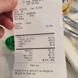 start from the beginning when you enter this place you feel weird.the restaurant was completely empty and there was I guess the owner and one more person who were the waiter/guard(the reason im saying that is that he had a gun on his waist very visible and somewhat disturbing as well) we sit down the owner of the restaurant approached us and offered us free bottled water (this is the time when we should have left lol) there is nothing free in lifethis restaurant has the most outrageous prices even for a kosher restaurant whatever you think it's expensive this place is even more expensive since we have had no choice and every other place was closed we decided to stay anyway what a mistake that was.we order the schnitzel (frozen with a side of small salad on an empty plate ) we also order pargyot(baby chicken) and the combo of meets they have I will save the world and let you see the pictures attachedand for the final of this disturbing fiasco the bill came(also attached in the pictures)if you keep kosher please make sure to plan in advance your next stay in sin city