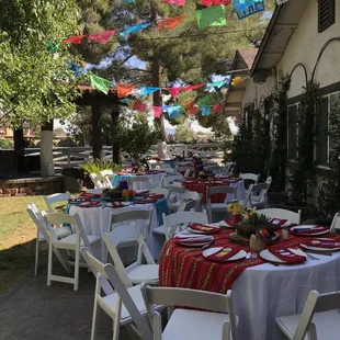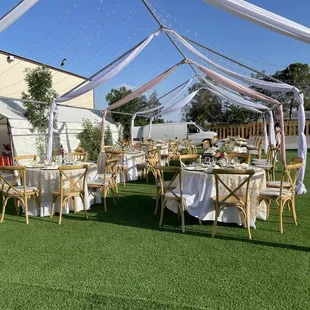 La Fiesta delivered in ALL the best ways!! They supplied BEAUTIFULLY draped tents with chandeliers, propane heaters, tables with linens, glasses, chairs and literally the best service! Jorge, Silvia and George were all more than happy to help with my many questions and add ons! Their service, talent and hard work made it possible for my daughter's wedding to be her dream come true! Thank you so much!! We will absolutely be using their services again! I already have friends booking rentals with them!!
