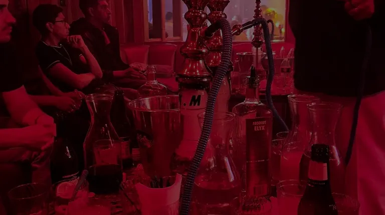 a group of people in a bar