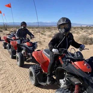 Definitely a phenomenal experience! Would totally do it again!I was able to get a corporate discount for me and my boyfriend months in advance. I was under the impression that I booked a 7:30-9:30am time slot, only to get a text the day before to meet in the Souvenir Outlet parking lot the day before the tour. I'm glad we didn't make any lunch reservations that day, because when we got there at 9:30, it was just a half hour of signing waivers and waiting around until we got into the tour bus and left at 9:57. It's a roughly one-way 20 minute trip. We didn't get back until around 12:30, and boyfriend and I headed back to our hotel to shower and change clothes (we got super dusty, definitely to be expected driving out in the dunes), so we didn't eat lunch until about 2:30.I also kind of wish they had sent out a list of way to bring for ATV driving beforehand. There was a list inside Souvenir Outlet, and if I had known there was a cage in front of the ATV to hold a water bottle, I would have brought mine instead of purchasing water bottles.Now onto the experience of actually driving out in the dunes. That was a FANTASTIC EXPERIENCE. An ATV is kind of like in between driving a car and a motorcycle. We were provided gloves, helmets, and goggles. Our tour guide Dustin led us along a tour path paved for guided tours, so it's kind of cool to see us as this long line of ATV drivers following each other. The more nervous drivers ride towards the front with him. We also had a second guy tag along with us to make sure we were moving along ok, helped us if any of us were having trouble with our ATV, and carting along a giant tank of water and first aid kit. The scenery out in the desert was really scenic and beautiful. Dustin was a great tour guide, and we really appreciated his blunt and frank guidance on safety on the tour. We had a blast and would totally ask for him again if we do another ATV tour in Vegas!
