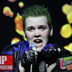 Not exactly sure how I can put this: It is a musical in the minuscule secondary room upstairs located at V Theatre that has a simple enough template storyline but is just confusingly bad. Could be cute if it were a jr. high school production putting it on for 5$ or something, but really is not worth whatever they will charge for it here. You will recognise the majority of the songs, and I suppose if you are really fucked up it could be highly entertaining. If you are sober, you probably will not find it that amusing. Some of the actors do indeed try (namely 'Turtle' and the goth character); in fact, in a different production with a different play (maybe somewhere other than the V theatre, that seems to be plagued with seriously bad series of shows). - EPostscript. I found the rail thin principle female character to be good as well; unfortunate that the play script is awful.