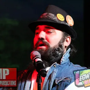 a man singing into a microphone