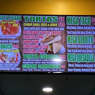 a menu on the wall