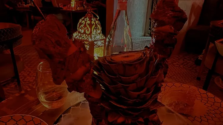 When you walk through the doors the experience already begins. As you enter the space, the ambiance is dim lit and filled with music. My knock of a star truly comes from the loudness levels. I understand the loud music during the belly dancing, but the music for the whole experience was overall TOO loud. The service was very quick and speedy. Being a prefixed meal allows for the food to come out. The prefixed meal comes with 6 items and is $60 per person. They also have modifications for vegans and vegetarians. First Course: Shrimp Scampi with Homemade Bread: the shrimp is perfectly cooked and plump. The sauce was lemoney and sweet. It was recommended for the bread to be dipped in the sauce. Delish! Second Course: Lentil Soup: I believe the soup was a fan favorite. The soup was a tangy tomato and the lentils were filling. The bread was also dipped in and was a beautiful pairingThird Course: Tapas; the Baba Ganoush was phenomenal, such a great flavor. It was a flavor bomb with pita chips and bread. The hummus was typical and nothing special. Tahini was nice and light. The veggies were a nice marination, the carrots were sweet. Fourth Course: Beef Kabobs: perfectly cooked and such a cute presentation. The beef was flavorful and cooked to a perfect temp to be cut with a butter knife. Fifth Course: Chicken and Couscous: the chicken literally melts in your mouth. The chicken was seasoned perfectly. It was so tender I couldn't even pick it up. It fell so perfectly off the bone. Couscous was delish too, a bit dry. Sixth Course: Dessert and Tea: the mint tea was presented tableside. The mint tea was VERY sweet. The dessert was warm and had a nutty flavor. Almost like a nutty banana breadThe knock for two stars were the loud music and awkward service interactions. I was still eating off the third course and he awkwardly took it away when clearing the table. Then my husband and sister had their plates cleared that clearly still had a ton of meat and was not taken to-go. So it was not my favorite experience in that regard. I would give a 3.5 stars
