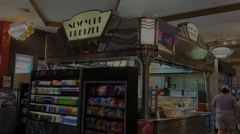 Friendly staff. Delicious soft with a crisp crust. Love the assortment of flavors. We opted for the Parmesan pepperoni twice in one trip and a Parmesan pretzel wrapped hot dog! Easy to find location - as you enter New York New York from the over pass bridge/at the top of the escalator.