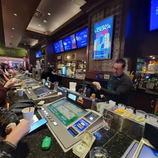 Love this place! The craps table by the door, was usually a minimum of $10.00. At 9 pm, they raised to $15.00 min. They have an amazing frozen Bailey's! Very refreshing and fun to drink when you're playing (and winning) Bartender Brian rocks! Wish it was bigger, but glad they still exist ! Keep it up. See ya next time