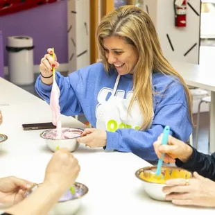 Sophie the manager is really sweet, she came around to help us with our slime. The entire staff is hands on and working as a team.We had such a good time, I took my daughter there and even though it was her second time, she still had a blast. They have a lot of options with different slime types, and then also what you want to put into your slime.For the experience and everything you can mix, the cost is about right. We've done home made slime, but something about going somewhere, where there's all these kids are doing the same thing, having a blast is worth doing. We had a reservation and was on time, and definitely recommend doing a reservation because it filled up with families right around opening time.