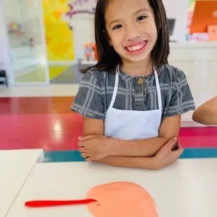 Made a reservation prior to coming in. This place honestly gets busy. My daughter had so much fun. You get to choose the texture of your slime, add glitter, and all other things inside. Can't remember the girl who was our teacher but she was really nice and kept asking my daughter if she wanted to do the bubbles. Love the container to put your slime in. 5+ in order to participate.