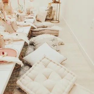 I had my baby shower here June 2022. It was a beautiful space that was so accommodating and had so many items available to use! I was able to use their chairs, tables and table cloths, the owner also brought in decor from her store to help with setting up. The arch and chair were all theirs I was able to use, I just paid someone to come set up balloons. The back room does have a small set up kitchen hidden behind a curtain to keep it hidden while guest walk by to use the restroom.It was easy to find for my guest, the store attached was so cute, the back room the owner set up as a kid room with a table for 8. I would definitely recommend this space, it was so super affordable!