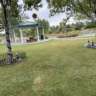 If you have a dog or child, or just act like one, this park is for you! There is a play set, restrooms, some picnic tables and an open field that dogs can run amuck! Today were actually a bunch of better behaved dogs than children, haha!There is a lot of memorial trees and decorations. Gardens are kept trimmed and clean. Street parking.