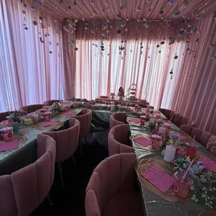 Amazing place for any celebration. the decor is absolutely beautiful and the owners were willing to customize everything I wanted. I hosted a tea for about 12 women and they all loved it. Great for showers, gender reveals, dinner parties and of course birthday parties .
