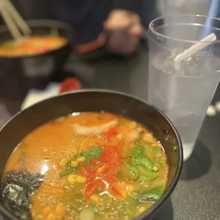 I know it seems crazy to want ramen during 100F heat wave (though it was 86F by the time we ate there). But soup on a hot day can actually be pretty yummy and get your body temp used to the heat. We got chicken gyoza, veggie ramen, and miso ramen. My miso ramen came with pork, chicken karaage, and gyoza. It was very comforting! I also found the greens to not be bitter, which was nice. The only problem I had was that the egg was very hard boiled. It would've been nice if it was soft boiled. But overall the miso was comforting, not overly salty, and the noodles were cooked perfectly. My mom's veggie ramen was perfect for her dietary restrictions. She appreciated the amount of veggies and that the broth also wasn't too salty. The gyoza were good, but I wish they gave us a lemon wedge instead of a slice. I couldn't squeeze any juice out of it. Service was friendly for the most part. They may have been short staffed and it didn't help that there was an issue with their ticketing system. But we weren't in a rush so we didn't mind the wait. The space is narrow, but there is an area that can accommodate maybe a group of 6 at the max. Otherwise, this place is probably best for parties of 2. And there are A LOT of signs. They must deal with many inebriated patrons or maybe just people being people. There are signs not to open the windows, not to bring outside food, to sign up on the wait list etc. So be sure to read everything when you enter. I think the total was around $50, which is really good for 2 people at a place on the strip. I would come back here again if I was craving ramen.