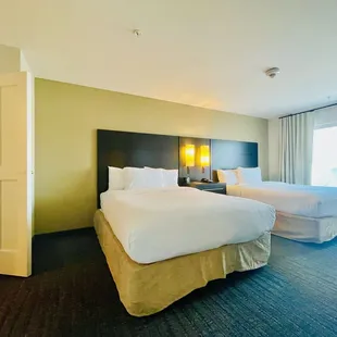Surprisingly, this was a very good stay. Double beds in the room with a separate living room space and lovely kitchen full refrigerator microwave plus a huge dining table. Spacious bathroom with bright lights. Very peaceful and relaxing atmosphere. There's another hotel next door and bank within walking distance in the parking lot. Free complimentary breakfast was excellent. Staffs were friendly and kitchen crew was fantastic. Very clean! It had a good variety for basics. Brand new and well maintained. You can easily walk all around the building or areas surrounding it. Lots of restaurants across the street and down the streets in Henderson. Lots of good crepes and French bakeries in Henderson, not far from hotel. Swimming pool area was packed with guests. Summer vibes here. Spacious indeed. Closet had enough clothes hangers and drawers in the hallway leading into the bathroom. Hairdryer was nicely wiped down in excellent condition. Yes, as a Marriott Bonvoy member, we would definitely be revisiting. Great location southwest of Henderson. Comfortable and safe neighborhood. My favorite was the window view in bedroom and living room. It felt special. We can see nature/the mountains and modern built homes from the room. Seven Hills neighborhoods? Absolutely gorgeous. The hotel room was definitely a memorable one. Highly recommended.
