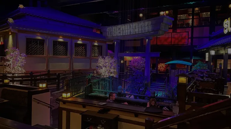 We decided to get a couple of sushi rolls after the Jen Kramer magic show nearby. The setting is great, such a beautiful restaurant. The space is shared with Benihana's. Multiple levels seating and a nice waterfall and little river, pond, fish, etc. Service was like old fashioned Vegas, extremely well organized. Both of the roles we had (Ocean's 11 and Hundred Grand) were very good. However, the rice was a little dry. The Japanese Daisy drink was very good. It was a nice visit overall.
