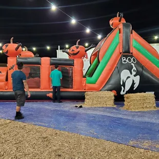 The train and blow up maze at the pumpkin patch