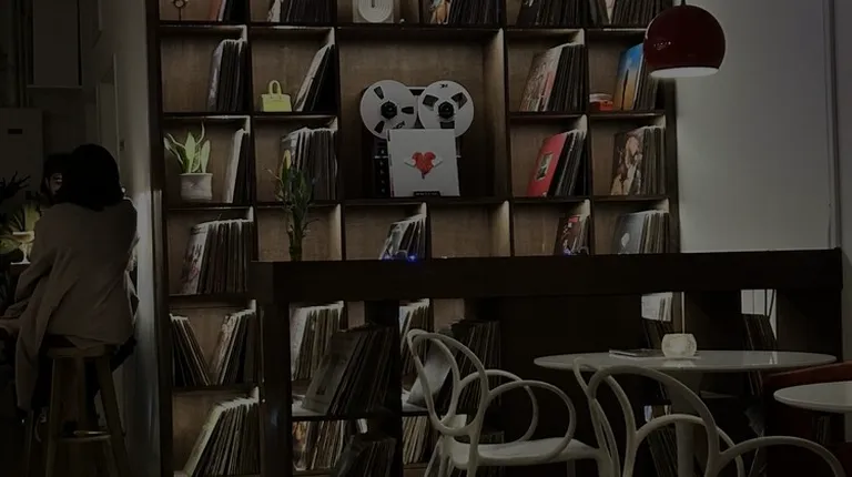 a wall of record shelves
