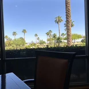 Delish. Staff understands service. Relaxing view of golf course and pond. One of the best Old Fashioned cocktails I've had off The Strip.