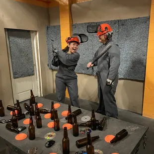 My boyfriend and I came to Vegas for my birthday and wanted to try something different. We got a package which consisted of 30 minutes of as throwing and 15 minutes of the smash room. The 15 minutes was the longest 15 minutes of my life I was so exhausted but it was so much fun haha. This was the most fun we've had in a while!! We definitely recommend giving this place a try if you're looking for some fun off the strip. It was about a 15 minute drive from the main strip. There is shopping in the same plaza and plenty of parking available. The staff is so welcoming and friendly here as well!
