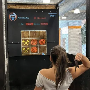 Clean environment very convenient location in Town Square. Staff was friendly and helpful. I love how ax throwing has changed it's not just throwing it at a painted log here. They have interactive games that are projected on a large square of wood. We there for an hour and did not try all the games that could have been projected. You could also rent throwing stars and knives as well. Prices were a little expensive I thought. Also they don't sell alcohol here which IMO is smart since your are throwing sharp bladed objects. Still a fun time and I would definitely come back.