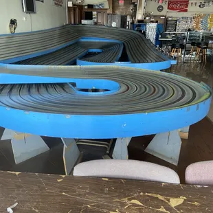 Such unexpected fun! I've been wanting to visit Slot Car City for a while, I finally made it, and I'm so glad I did. We went in and got a great explanations of what was going on. We paid for 1/2 and hour. We each got a car, a throttle, and a lane on the track. It takes a little bit to get the hang of it. Each car has its own behavior and each lane is a little different in how you have to drive it.Next time I'll probably race for an hour, 1/2 hour isn't long enough! You definitely lose track of time racing these machines! Go! You really need to try this yourself, it's a ton of fun!