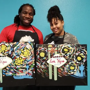 Omgosh where do I start about how much fun we had at our Christmas party at Sparks Art?! First, she will do a custom design for you if you cannot choose from her enormous gallery of art. Out group "a cat riding a unicycle on a rainbow over a Christmas tree farm under a starry sky". Boom! Caitlin came up with the cutest drawing!! It looked super complicated but her step by step instruction made it so much fun and I'm not totally embarrassed by my painting!! We were allowed to bring our own food and drink to the party so we were able to snack on"paint drying breaks". The place is super cute. Located directly across from spring valley hospital. And Caitlyn is adorable!! She went with the vibe of our crazy group and was funny and goofy with us!! Absolutely will be coming back here with our team again and again!!