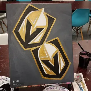 My friends and I came in for the Golden Knights Logo class, and even though it was just the 3 of us (which thankfully is the minimum requirement to hold classes), we had a blast! Because the class was so small, the setting felt more relaxed and intimate, and we were able to chat about anything and everything amongst ourselves and our instructor, Caitlin. As advertised, prior experience is not necessary, but for this class it was also great that we didn't have to worry about drawing out the logo ourselves, so that we could just focus on applying the paints. Caitlin even accomodated us with extra colors to use for a background or borders, and extra time to apply it(which is great because I'm a slow painter). Definitely plan on attending more classes in the future.
