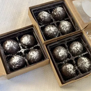 Omg these Peanut Butter balls were so delicious! They were crispy with chocolate and peanut butter...I purchased two boxes of them! I was able to sample them at an event hosted by YelpLV at Pine Hollow Winery last night! The owner was super sweet and had a nice little set up with the chocolate and allowed us to sample them with our wine tasting. I look forward to having some more soon!