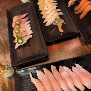 I like Sakana, so I wanted to try this spot out. Unfortunately, expectations fell short and I wasn't very impressed. The ambiance is pretty nice and we enjoyed how everything was decorated. We were seated upon entering and food came out quick. Servers paid very good attention to our cues and knowing when we were ready to order again.We tried most of the nigiri and a few rolls. The fish to rice ratio in the nigiri is 1:1. The nigiri and rolls had a lot of rice. The rolls were okay, not super flavorful and nothing was memorable. We normally order multiple rounds of nigiri, but didn't feel it was as good so we just got 1-2 rounds. The nigiri came out warm. Fish wasn't the worst, but it didn't taste as fresh and wasn't very well flavored. It kind of all tasted the same. Overall, a pretty average sushi spot. I would go elsewhere for better quality ayce sushi in Vegas.