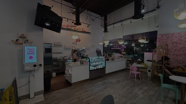 Yelp Review 2024 #86:There was another dessert/ boba tea shop right across from Sweet Talk and we were torn between the two places. Without checking Yelp and have our opinion swayed, we ended up at Sweet Talk.They have a glass case with cute desserts, a wall of flowers and a seating area that looks like a bird cage. They had a swamp cooler when we went - not sure if this was typical for them.They have jelly, pudding, iced tea, boba tea, latte, smoothie, matcha, cake slices, crepe, crepe cake, shaved ice, mango mousse shaped like corn. The piggy pudding comes in different flavors and I really wanted to try one but we came from an AYCE hot pot lunch. All we had room for was a drink.We all had passion fruit iced tea. I forgot the names of the drinks. One had passionfruit and lychee, one had passionfruit and pineapple, and one Passaflora (passionfruit & grape juice,passion fruit, aloe, aloe jelly, jasmine green tea). The drinks are refreshing but a bit too sweet - but all I had to do was drink a bit and pour some water to dilute it.