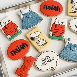 a tray of decorated cookies